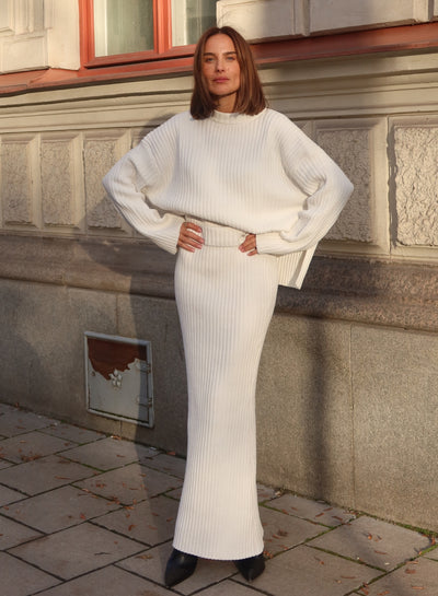 Almond White Rib Knit Maxi Skirt