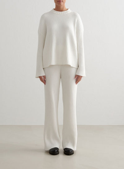 Almond White Rib Knit Sweater & Pants Set